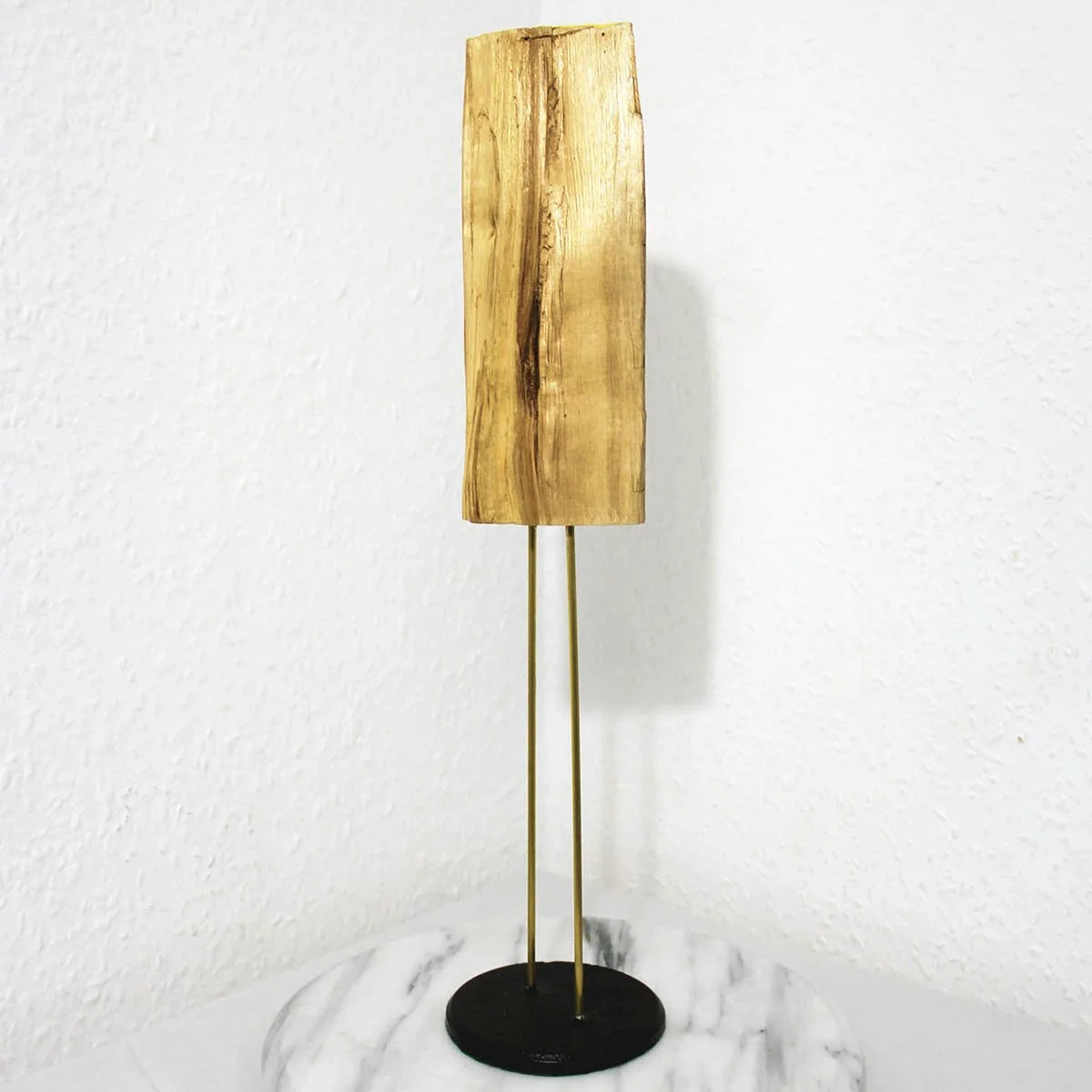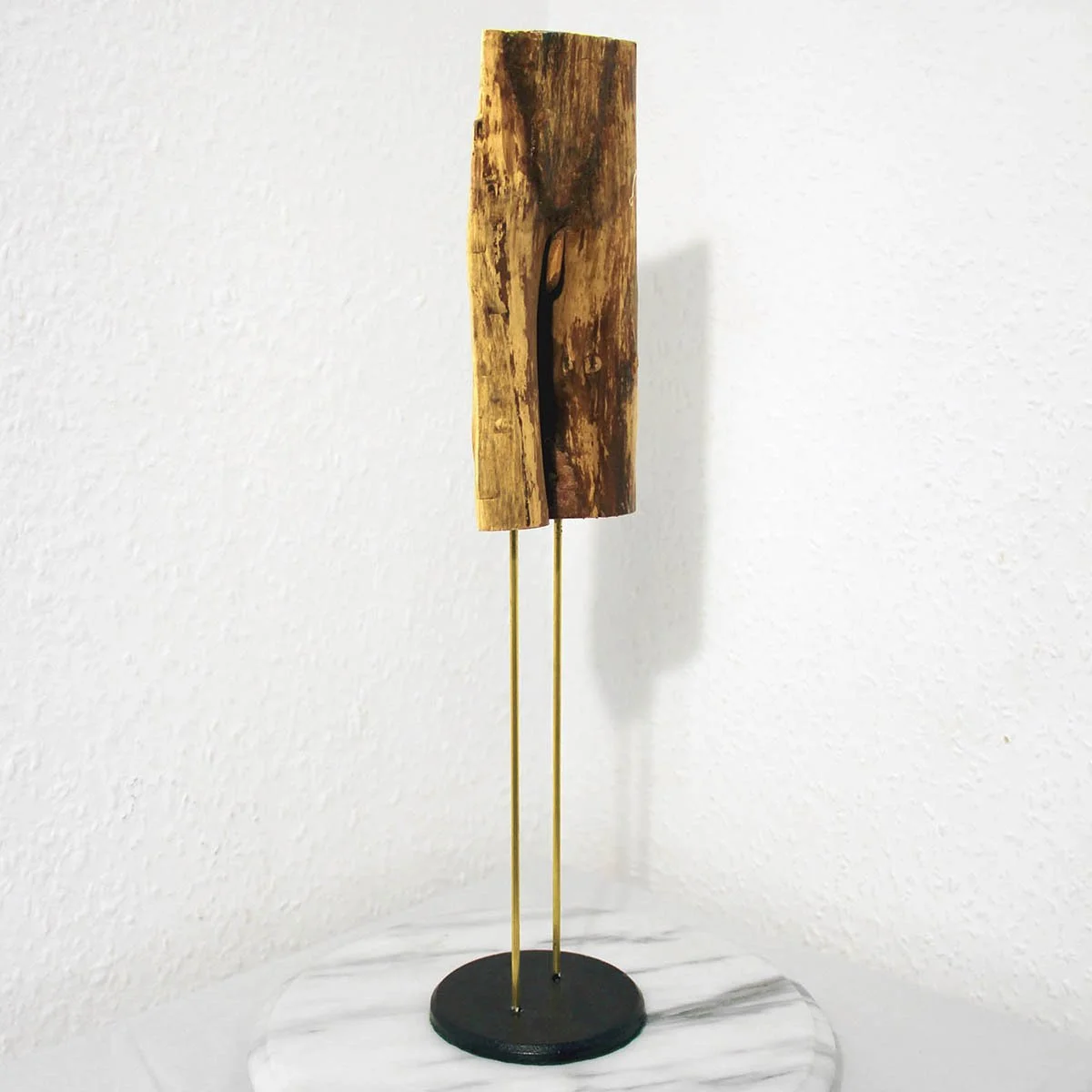 Treated hardwood on two brass rods mounted on a steel plate, freestanding with soft underside. H 500 x W 220 x L 200. Weight approx 5Kg. Oracle of the World. By Chris Derbyshire For sale £ TBC Interested?